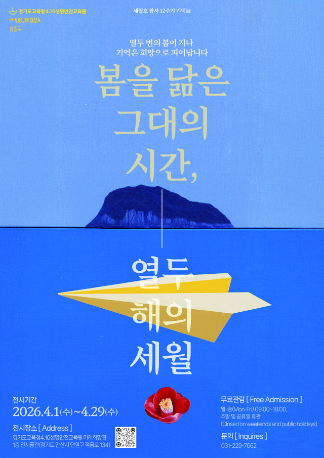 또 경기도교육청은 오는 29일까지 경기도교육청4·16생명안전교육원과 함께 ‘봄을 닮은 그대의 시간, 열두 해의 세월’과 ‘세월의 생명들-열두 해를 지나 희망을 보다’ 등 세월호 참사 12주기의 의미를 입체적으로 조명한 2건의 전시를 진행 중이다.