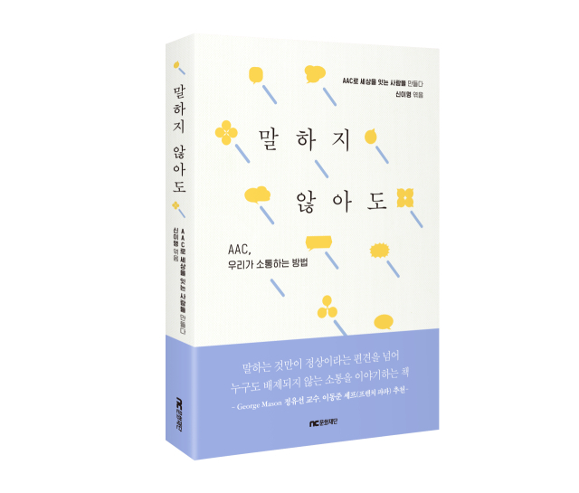 이처럼 구어소통에 어려움을 겪는 사람이 말을 대신하여 자신의 의사를 표현할 수 있도록 하는 도구나 방식을 보완대체의사소통(Augmentative Alternative Communication, 약칭 AAC)이라고 한다. NC문화재단은 보완대체의사소통 어플리케이션 '나의AAC'를 개발하여 무료 배포하고 AAC 교육, 현장 지원, 학회 및 공모전 후원 등 다양한 AAC 사업을 전개하고 있다. 작년엔 언어치료 프로그램 지원 사업을 통해 인연을 맺은 장애 당사자, 언어재활사, 보호자들의 이야기를 담은 다큐멘터리 <말하지 않아도>(2025, 신이명 연출)을 제작하고 동명의 연계 전시에서 상영회를 열었다. 그리고 올해 3월 그간의 여정을 총망라하는 AAC 도서 <말하지 않아도>를 출간했다.