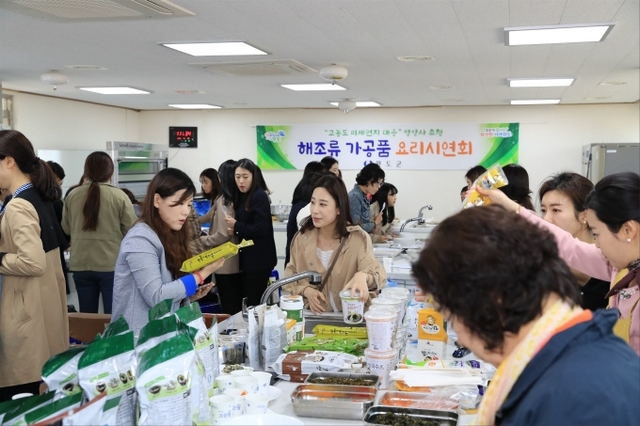 미세먼지가 사회적인 이슈로 급부상하고 있는 가운데 전남 완도군(군수 신우철)이 미세먼지 배출에 도움이 되는 완도산 해조류를 관내 학교급식에 제공한데 이어 관내 초‧중‧고 영양교사 28명을 초청해 해조류 가공품 요리 시연회를 개최했다.