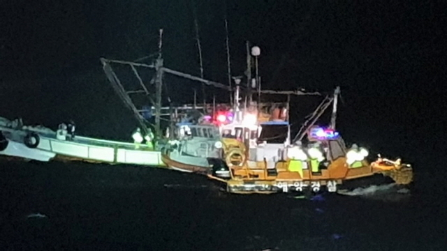 또한 기상악화 속 2시 54분부터 구조정이 계류해 선원 5명을 안전하게 탑승시키고 배수펌프를 이용해 약 50분간 배수 작업을 했으며 안전 상태와 침수 증가가 없는 것을 확인 한 후 5시 50분경 선단선 M호(24톤, 목포선적, 근해안강망)을 섭외해 완도와 목포 경비정들이 함께 안전관리 했다.