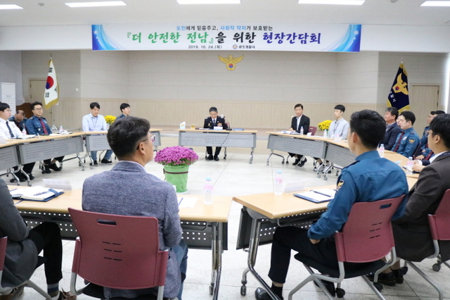 전남 완도경찰서(서장 김범상)는 지난 24일 김남현 전남지방경찰청이 완도서를 방문, 경찰서 장보고홀에서 김범상 완도서장을 비롯한 완도서 직원들이 참석한 가운데 도민에게 믿음주고, 사회적 약자가 보호받는 '더 안전한 전남'을 위한 현장간담회를 개최했다.