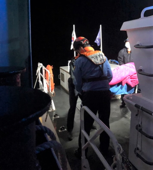 해경은 허리통증과 호흡곤란을 호소하여 응급구조사와 보호자 등 5명을 승선시키고 신속하게 이동하여 저녁 6시 43분경 약산면 당목항으로 입항, 안전하게 119에 인계했다.