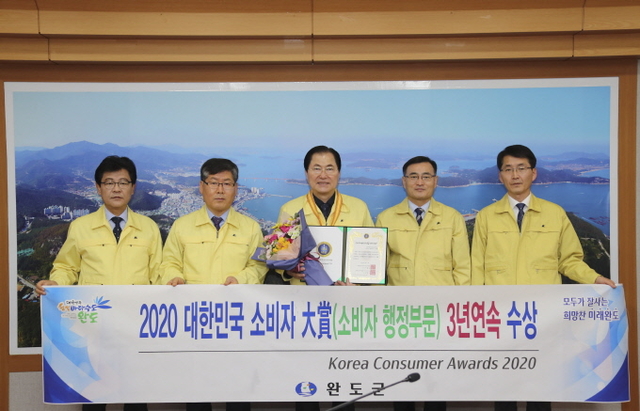 완도군은 지난 11일 한국소비자협회 주관하는 ‘2020 대한민국 소비자 대상' 시상식에서 '소비자 행정 부문' 대상을 수상했다.