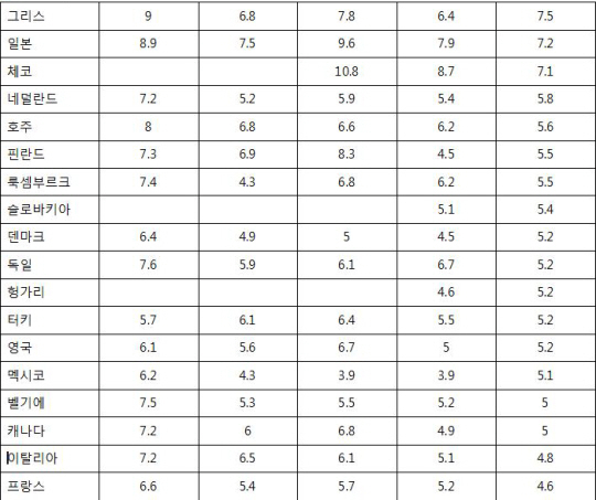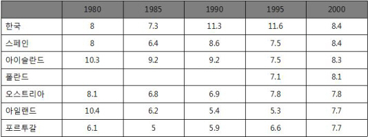〈표 3〉OECD 국가별 GDP에서 건설업이 차지하는 비중(1980~2000)