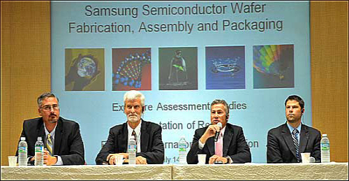 | ▲ 삼성전자 반도체 기흥 사업장에서 '반도체 생산라인 근무환경 재조사'를 발표하는 미국의 안전보건컨설팅 회사 인바이런 직원들. ⓒ삼성전자 |