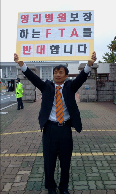 | ▲ 국회 앞에서 한미FTA 반대 1인 시위를 하고 있는 송기호 변호사. ⓒ프레시안 |