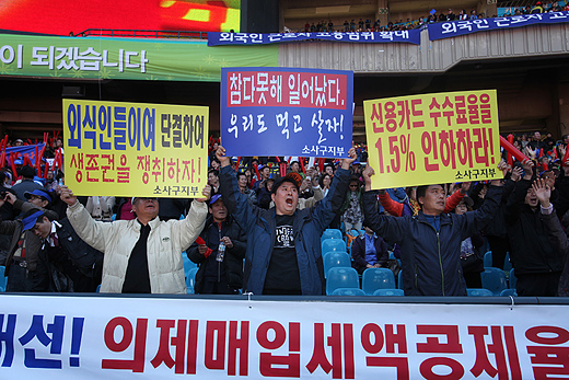 | ▲18일 음식업주들이 서울 잠실 주경기장에서 신용카드 수수료율 인하를 촉구하는 궐기대회를 가졌다. ⓒ프레시안(최형락) |