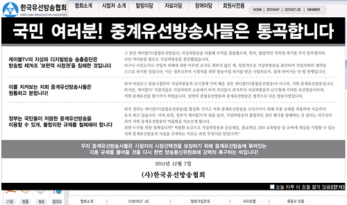 또 "사전고지나 가입자 피해에 대한 아무런 조치도 취하지 않은 채 일방적으로 지상파방송을 중단해 가입자와의 계약을 스스로 파기한 것"이라며 "정부로부터 시청자를 위한 방송사업 허가를 받은 사업자로서, 절대 하여서는 안 될 만행"이라고 비난했다.