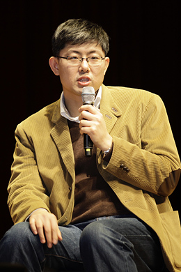 ▲토크쇼는 두 차례에 걸쳐 이뤄졌다. 두 번째 토크쇼는 (좌로부터) 공연기획자 탁현민 씨의 사회로 김용민 시사평론가, 유시민 통합진보당 공동대표, 공지영 소설가, 조상훈 국민일보 노조위원장, 고재열 <시사IN> 기자가 참석했다. ⓒ프레시안(최형락)