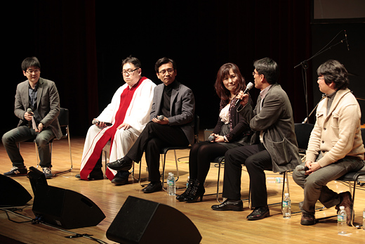 12일 저녁 8시 서울 마포구 마포아트센터에서 열린 '국민일보파업대부흥회 – 교회오빠와 교회누나, 동생들의 만남'은 공연기획자 탁현민 씨의 진행 아래 다양한 볼거리로 채워졌다. <국민일보>의 성격에 맞는 개신교 색채가 청중들에게 부담 없는 모양새로 채워졌고, 방송사 파업콘서트에 비해 이야기 시간이 더 많은 게 특징이었다.