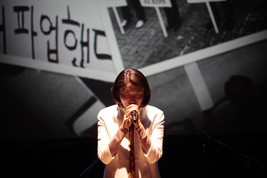 관객들은 공연 말미 조합원들의 지지호소에 두 시간이 넘는 공연 중 가장 큰 박수를 보냈다.