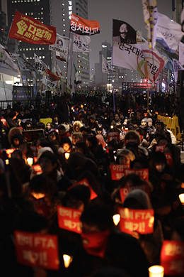 이강실 범국본 공동대표는 "망국일인 15일을 앞두고 무력감을 느낀다"면서도 "한미 FTA가 폐기되는 그날까지 촛불을 밝히자"고 시민들의 참여를 독려했다.