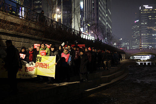 | ▲14일 청계광장에서 한미 FTA 폐기를 요구하는 촛불집회가 열렸다. ⓒ프레시안(최형락) |
