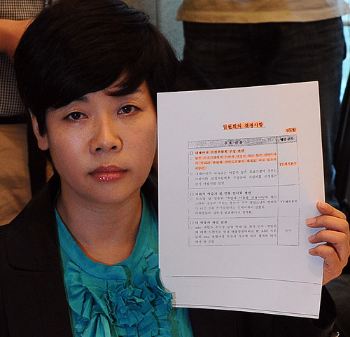 | ▲김미화 씨는 "국정원 직원을 두 차례 만났다"고 밝혔다. '블랙리스트' 발언으로 KBS로부터 명예훼손 혐의로 고소를 당한 김 씨가 지난 2010년 7월 19일 오전 경찰에 출석하기 전 서울 여의도 메리어트 호텔에서 기자회견을 갖고 'KBS 블랙리스트' 언급에 대한 입장을 밝히고 있다. ⓒ뉴시스 |