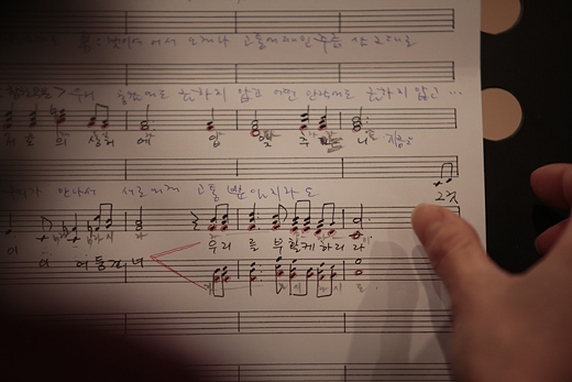 이날 연습에는 멤버 8명 중 7명이 참석했다. 각자가 일정이 있다 보니 연습일을 잡기도 쉽지 않다. 당초 이번 공연은 지난해 말로 예정했었다. 그러나 입시생 자녀를 둔 멤버의 사정 때문에 올해로 미뤄졌다. 혹시나 싶어 "중요 선거가 있어서 올해로 공연을 잡은 건 아닌가요"라고 물어봤지만 한동헌 노찾사 대표는 단호히 "아니"라고 손사래를 쳤다.