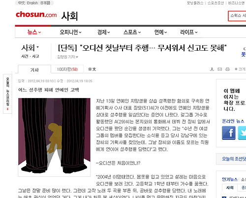 20일 <미디어오늘>과 해당 언론 관계자, 언론사에 따르면 <조선일보>는 지난 19일 신문과 온라인판에 '"오디션 첫날부터 추행… 무서워서 신고도 못해"'라는 제목의 기사를 '단독' 타이틀을 달아 발행했다.
