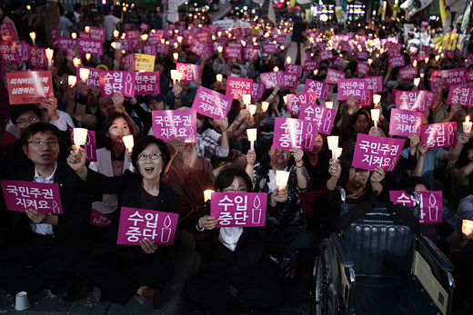 | ▲2일 저녁 서울 청계광장에서 미국산 쇠고기 수입에 반대하는 촛불집회가 2008년 이후 4년 만에 다시 열렸다. ⓒ프레시안(최형락) |