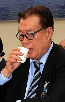 | ▲김재우 방송문화진흥회 이사장이 26일 저녁 서울 여의도 국회 문화체육관광방송통신위원회회의실에서 열린 전체회의에 참석 의원들의 질의에 물을마시고 있다. 김 이사장은 지난 25일 문방위 출석이 예정되었지만 건강과 일신상의 이유로 불출석했다. ⓒ뉴시스 |
