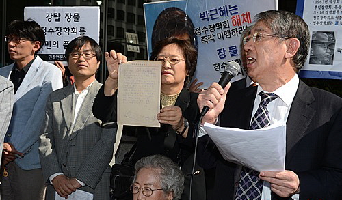 유족들은 또 박근혜 후보가 여전히 실질적으로 정수장학회를 소유하고 있기 때문에 정치적 문제가 일어난다는 점을 강조했다.