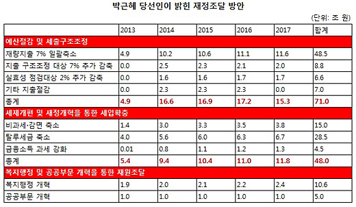 | ▲박근혜 당선인이 밝힌 재정 조달 계획. ⓒ프레시안 |