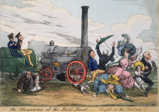 | ▲ 철도가 막 등장했을 때의 사회상을 풍자한 그림. 사람들이 놀라고 있다. ⓒ영국국립철도박물관 |