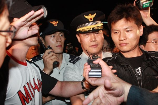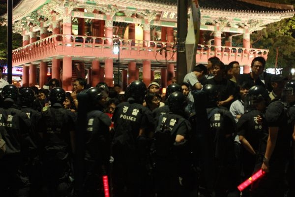 우 서장이 갑자기 정복 및 사복 경찰을 대동하고 갑자기 시위대 사이로 끼어들자 흥분한 시민들은 "어청수는 물러가라"를 외치며 몰려들었고 일부 시민은 우 서장에게 생수통에 든 물을 끼얹기도 했다.