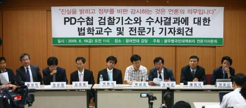 | ▲ 19일 참여연대 느티나무 강당에서 열린 'PD수첩 검찰 기소와 수사 결과에 대한 법학 교수 및 전문가 기자회견 ' 장면. ⓒ언론노보 |