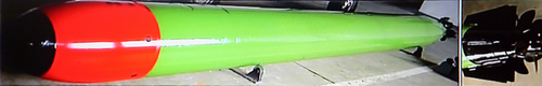| ▲ 합조단이 천안함 조사 결과 발표에서 증거물로 제시한 북한산 수출용 CHT-02D 어뢰의 사진. 어뢰 몸체는 검정, 빨강, 녹색 페인트가 칠해져 있고, 오른쪽 추진 후부에도 검은색 페인트가 칠해져 있다. 그러나 합조단이 수거한 어뢰 추진체 잔해물은 모든 페인트가 벗겨져 있고 녹이 슬어 있었다. ⓒ연합뉴스 |