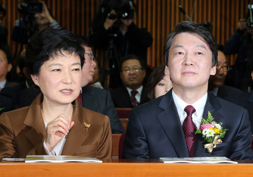 | ▲17일 김대중기념사업회 주최 토론회에 나란히 참석한 새누리당 박근혜 후보와 무소속 안철수 후보. ⓒ연합뉴스 |