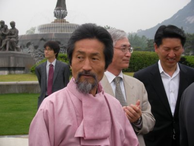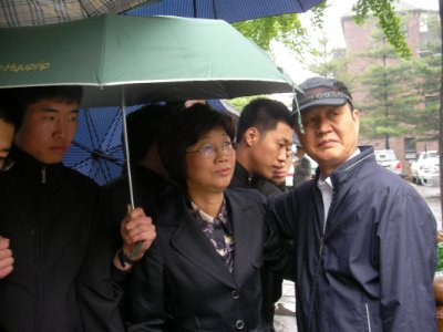 ▲ 경찰의 제재로 분수대로 가지 못하고 있는 민주노동당 최순영 의원과 이수호 비대위원이 심각한 표정을 짓고 있다.ⓒ프레시안