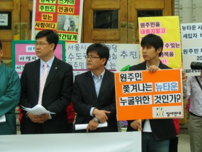 ▲ 무리한 뉴타운 사업 추진은 끊임없이 잡음을 일으키고 있다. 지난 5월 7일 12개 시민단체와 동작구민이 서울시청 앞에서 뉴타운 정책을 비판하는 기자회견을 가졌다.ⓒ프레시안