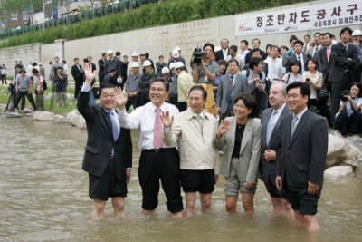 청계천은 이명박 대통령이 지금 자리에 올라서게 만든 일등 공신 사업이다. 지난 2005년 10월, 47년 만에 햇빛을 다시 본 청계천에서 흐르는 물에 발을 담근 채 환하게 웃는 서울시장의 이미지는 곧바로 '성공한' 대통령으로 이어졌다. 이 대통령은 이런 청계천의 변화 모습을 홍보하기 위해서만 33억여 원이 넘는 돈을 쏟아 부었다.