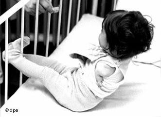 | ▲임신 중 탈리도마이드 복용으로 팔이 없이 태어난 아기. 임신부의 탈리도마이드 복용은 전세계적으로 약 8000여명에 달하는 사지기형 아기를 태어나게 만든후, 1962년 사용이 금지되었다. ⓒdw-world.de |