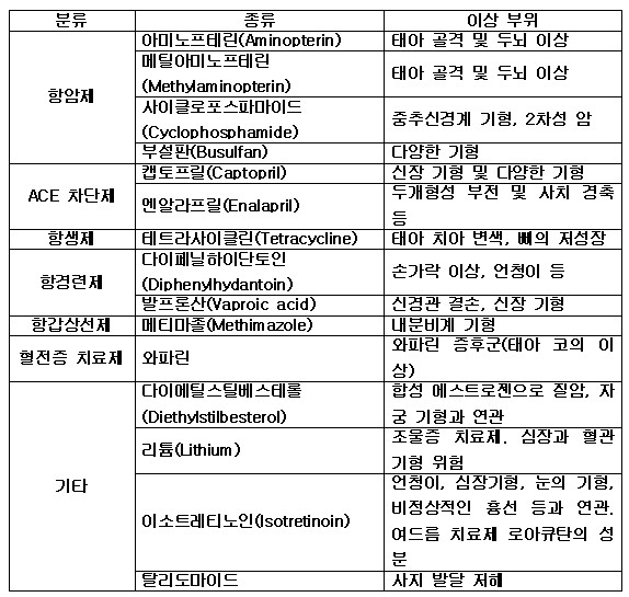 | ▲임신 중 복용했을 때 가장 심각한 후유증을 남기는 테라토젠류. ⓒ프레시안 |