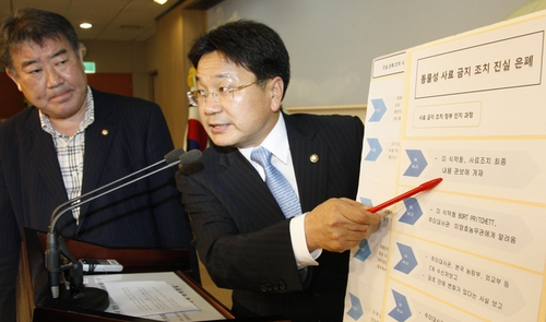 강 의원은 "이상길 축산정책단장 5월 7일 열린 국회 농해수위 청문회에서도 미국의 사료 금지 강화 조치에 대해 허위로 보고하거나 모호하게 보고했다"며 "위증죄로 고발하는 방안도 검토하는 등 이번 은폐, 조작 사건의 책임자를 반드시 가려내겠다"고 말했다.