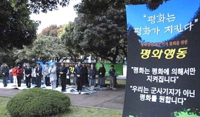 | ▲ 이명박 정부는 50조원 규모의 광역발전 계획에 제주도 해군기지 건설을 슬며시 끼워넣었다. 사진은 해군기지건설을 반대하는 제주 주민들. ⓒ제주참여환경연대 |
