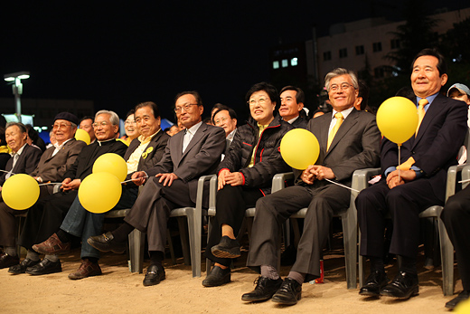 이날 객석 맨 앞줄 한 가운데는 한명숙 전 총리, 문재인 이사장, 이해찬 전 총리, 내년 총선 부산 출마를 선언한 김정길 전 장관, 최근 광주전남과 부산경남의 '남부민주벨트' 구축을 제안한 정세균 민주당 최고위원 등이 나란히 앉았다.