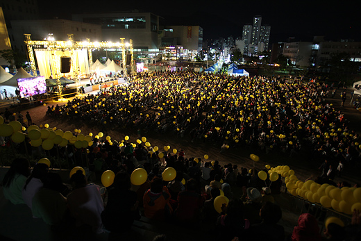 | ▲ 22일 부산대에서 열린 노무현 전 대통령 2주기 추모 콘서트 전경ⓒ프레시안(최형락) |