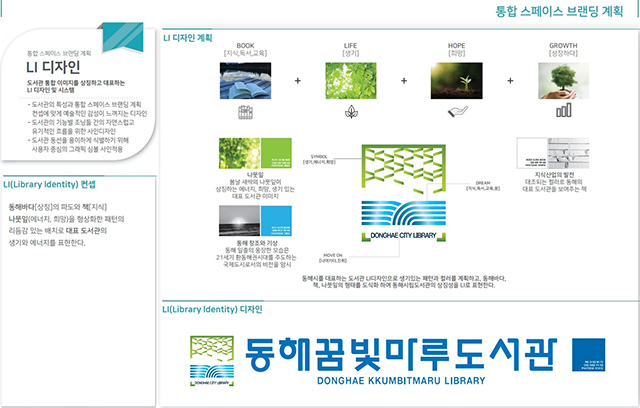 LI디자인 심벌마크는 동해시립도서관 전체 공동 마크로 활용할 계획이다.