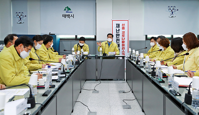 강원 태백시(시장 류태호)는 18일 재난안전상황실에서 코로나19 확진자 추가발생 등 중대 고비를 맞고 있음에 따라 류태호 태백시장 주재로 긴급대책회의를 가졌다.