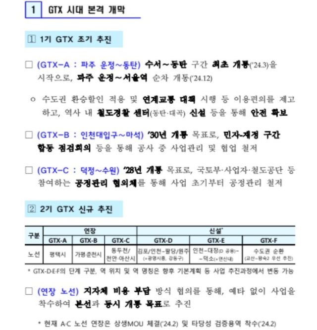 아울러 GTX 조기 추진을 위해 올 3월 수서∼동탄 구간 최초 개통을 시작으로 파주 운정∼서울역 순차 개통(올 12월)을 담고 있다.