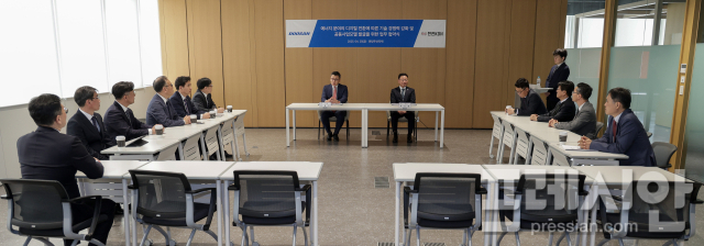 박상형 한전KDN 사장과 송용진 두산에너빌리티 사장을 비롯한 양사 관계자들이 참석해 진행된 협약식은 두산 헤리티지 투어를 시작으로 협약식 서명과 협약 이행에 대한 약속을 협의하는 순서로 진행됐다.