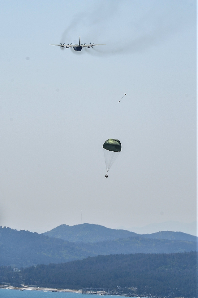 이번 훈련에는 해병대 1사단, 군수단, 항공단, 해군 특전대대 및 공군 작전사·군수사가 참여해 해군 마라도함 및 공군 C-130 수송기, 해병대 MUH-1 ‘마린온' 등 해상 및 공중 전력이 투입됐다.