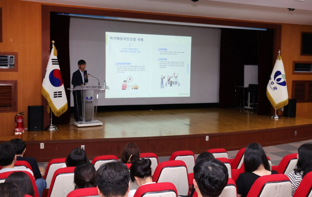 20일 무주군민의 집에서 진행된 ‘적극행정 국민신청’ 교육에는 무주군청 공무원 100여 명이 참석, 국민권익위원회 적극행정 국민신청팀 사무관의 △적극 행정의 이해 및 필요성, △적극 행정과 소극 행정의 분야별·유형별 사례, △국민신청 개념 등에 대한 강의를 들었다.
