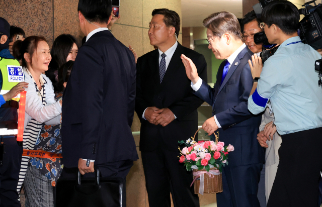 소감을 밝힌 이 후보는 곧바로 차량에 탑승해 국회로 이동했다. 당선이 확실시 될 경우 이 후보는 국회 앞 광장에서 수락 연설을 하게될 것으로 보인다.