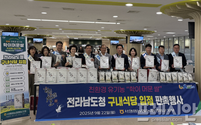 영암군과 서영암농협이 22일 전남도청에서 저탄소 유기농 학이머문쌀 시식 및 나눔행사를 열고, 매월 1톤씩을 구내식당에 공급하기로 했다.