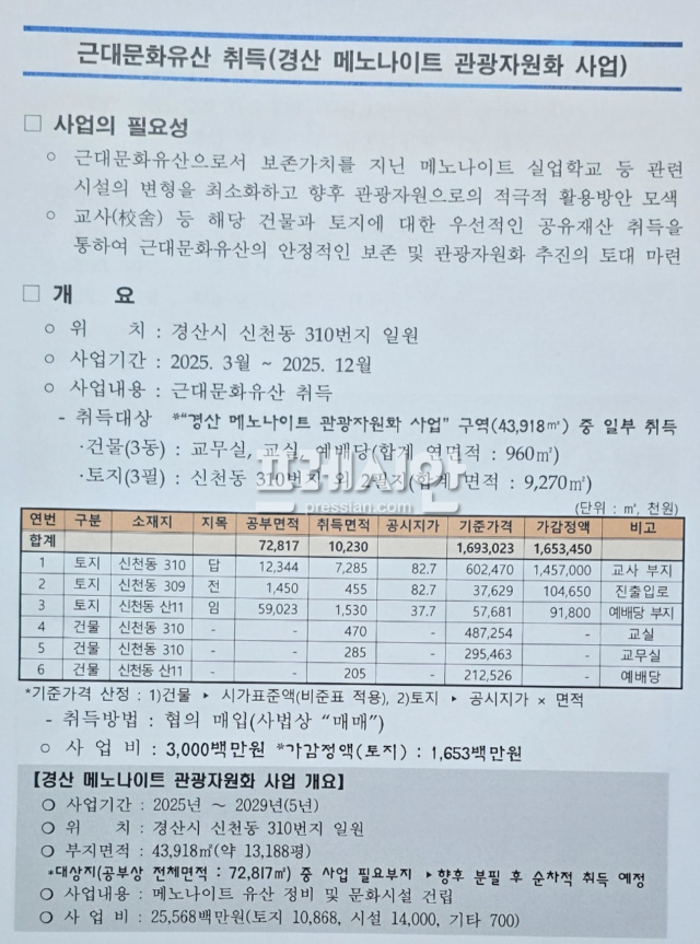 이를 포함한 전체 부지 매입 예산은 100억 원 규모로, 시는 해당 부지의 근대문화유산 가치를 강조하며 관광자원화 사업을 추진한다는 것이다.