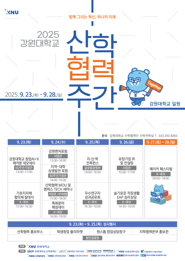 강원대학교(총장 정재연)는 23~28일까지 춘천캠퍼스 일원에서 ‘2025년 강원대학교 산학협력주간’ 행사를 개최한다.