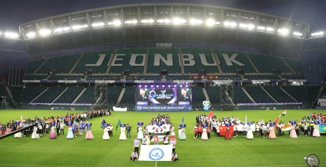 세계 최초로 열린 ‘2025 전주드론축구월드컵’이 25일 전주월드컵경기장에서 화려한 개막식을 갖고 나흘간의 대장정에 들어갔다.