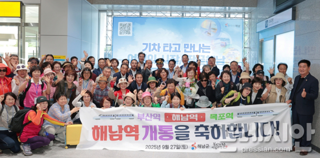 이날 오전 8시 2분 목포역을 출발해 31분만에 해남에 도착한 새마을호의 첫 방문객에게 꽃다발 증정한데 이어 오전 7시 48분 부산을 출발해 낮 12시 25분 해남에 도착한 남도해양관광열차(S-train) 단체여행객을 대상으로 환영식이 진행됐다.